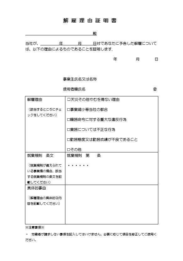 再就職援助計画対象労働者証明書